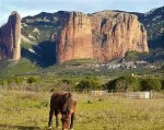 Pero, sin duda, lo más apreciado del lugar del convite es su panorámica, con los mallos, a lo lejos, imponiendo sus extraordinarias hechuras en la vieja sierra prepirenaica, en el mismo lugar donde asegura la leyenda que la Giganta Hilandera, rechazada por las gentes, clavó las inmensas moles rocosas para esconderse entre ellas y aislarse de los humanos que la malquerían. Allí sigue, dicen, hila que te hila, inclinándose alguna que otra vez hacia el río Gállego para mojar el peine que desenreda sus cabellos canosos y el lino con el que lleva cientos de años entreteniendo su obligada soledad.