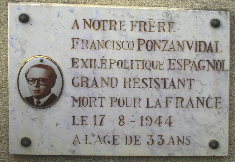 Paco Ponzán que fue, finalmente, detenido por la Gestapo y sabía la suerte que le esperaba, escribió, en un trozo de papel, a modo de emotivo testamento: «Deseo que mis restos sean trasladados un día a tierra española y enterrados en Huesca, al lado de mi maestro, el profesor Ramón Acín, y de mi amigo Evaristo Viñuales [*]». Su deseo nunca se vio cumplido.